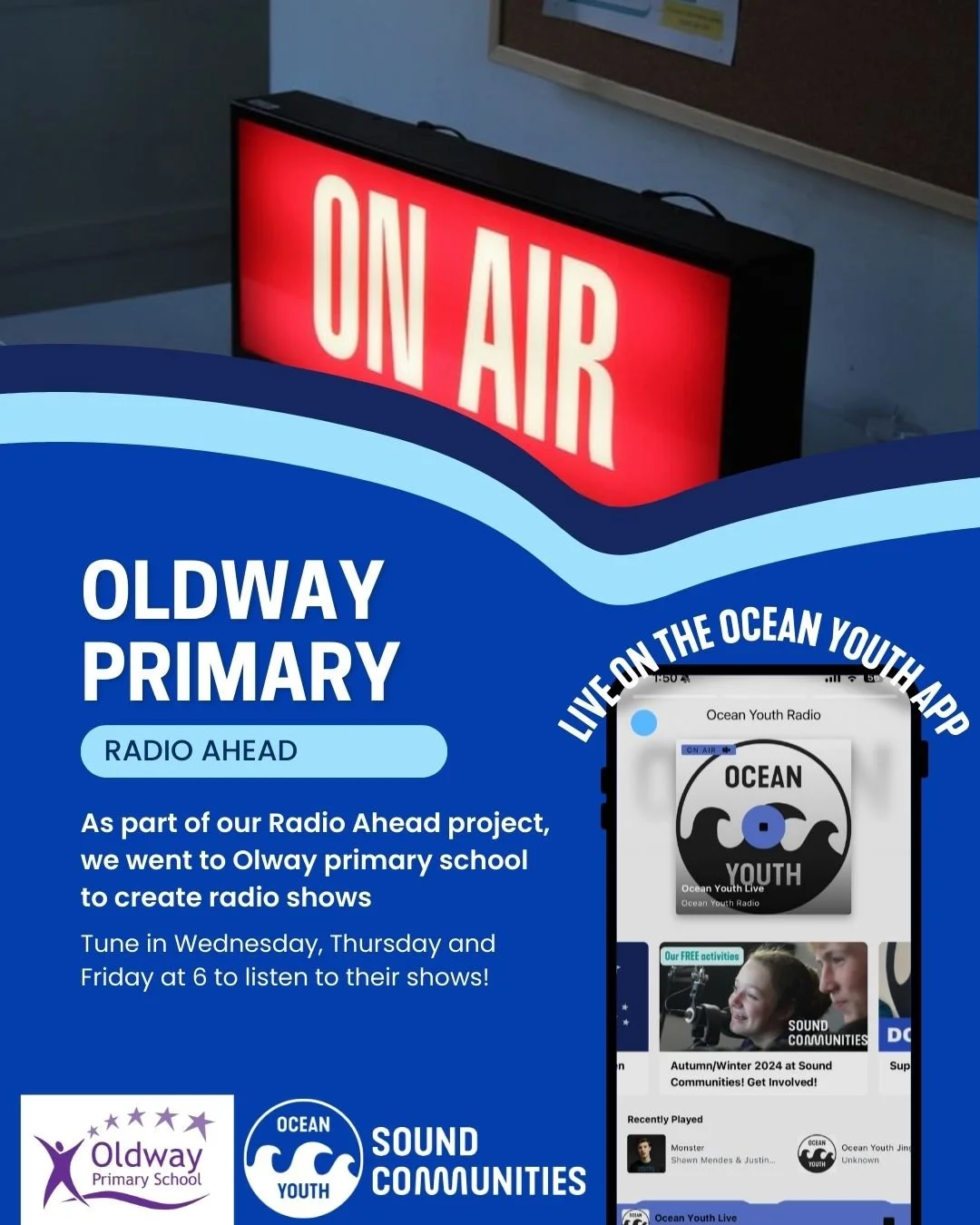 This half term, we visited Oldway Primary School in Paignton, where we worked with eight Year 6 pupils. Over the course of three weeks, the young people became radio presenters and created group shows that aired on Ocean Youth Radio.